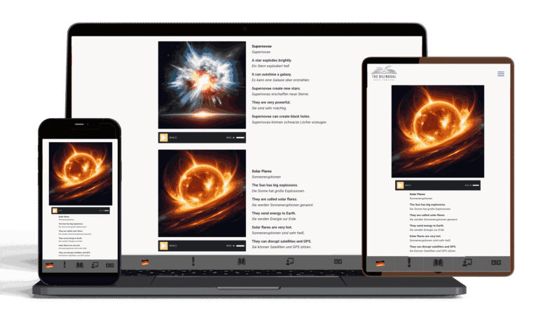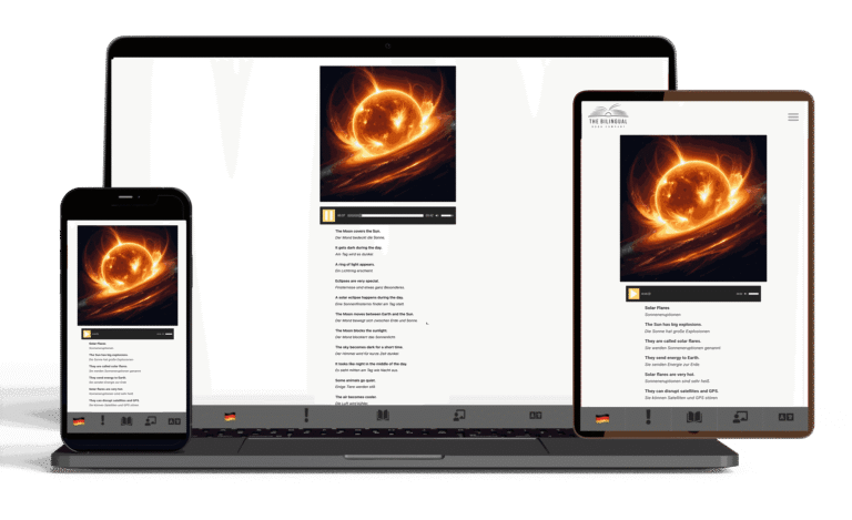 Unsere Progressive Readers ermöglichen es Kindern, tiefer in die Bücher einzutauchen, die sie bereits mögen. Die Titel in dieser Sektion sind dieselben wie in den zweisprachigen Hörbüchern 7+, doch die Seiten enthalten deutlich mehr Informationen – ein Ansatz, den wir gestuftes Lernen nennen. So können Kinder Stück für Stück mehr über ihre Lieblingsthemen erfahren und weiterhin mit Übersetzungen Zeile für Zeile lernen, was das Verständnis erleichtert und zusätzlich motiviert. Interessensbasiertes Lernen ist ein zentraler Bestandteil unserer Materialien, weil es Kindern hilft, länger konzentriert und engagiert zu bleiben. Drucken Sie gerne das PDF-Bücherregal aus, damit Ihr Kind über QR-Codes schnell die passenden Bücher findet, und speichern Sie das PDF auf Ihrem Handy, um jederzeit bequem über die blauen Button-Links auf die Hörbücher zuzugreifen.