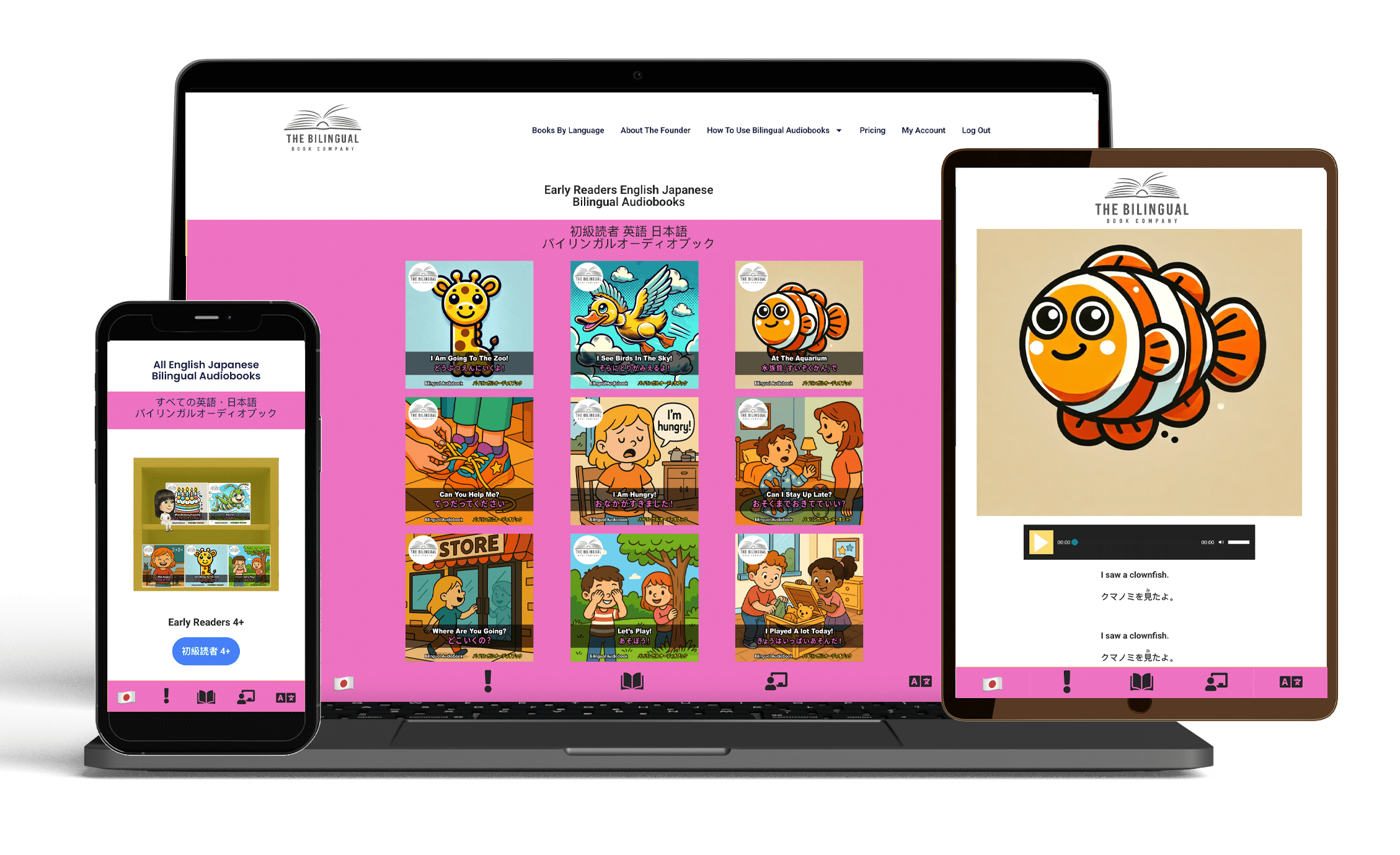 お子さまが読み始めの段階にいるなら、二つの言語で読む習慣をいっしょにつくってみませんか。二か国語オーディオブックなら、無理なく楽しく始められます。初級向けのシリーズは、子どもが自然に二つの言語にふれられるように作られており、全部で33冊あります。1冊ごとにひとつの動詞をテーマに、短い文をくり返し使っているので、新しい言葉や文の流れが覚えやすくなっています。文が何度か登場することで、日常よく使う表現にも親しめます。PDFの「本棚」を印刷すれば、QRコードからすぐに好きなオーディオブックにアクセスでき、各ページにリンクも付いています。最後のQRコードからは、33冊すべての無料ぬりえページもご利用いただけます。