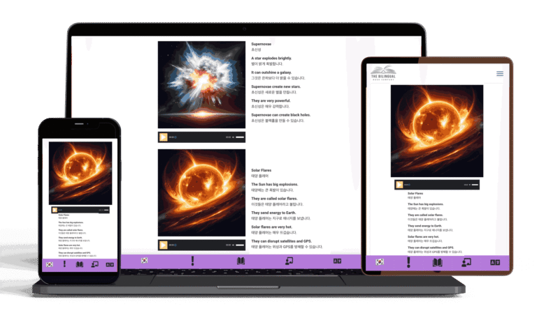 프로그레시브 리더스는 아이가 이미 좋아하는 책을 더 깊이 읽어볼 수 있는 단계예요. 이 부분에 있는 이중언어 오디오북은 *이중언어 오디오북 7+*와 제목은 같지만, 페이지마다 설명과 내용이 더 풍부해요. 이런 방식을 ‘단계별 학습’이라고 하며, 아이가 관심 있는 주제를 더 오래, 더 깊게 읽을 수 있도록 도와줘요. 줄마다 번역을 제공해 이해를 돕고, 즐겁게 두 언어를 함께 익힐 수 있어요. 관심 기반 학습은 아이들이 꾸준히 집중하고 언어에 오래 머물 수 있도록 해주는 핵심 원리예요. PDF 책장을 출력해 QR 코드로 쉽게 책을 찾을 수 있도록 준비해 주세요. 휴대폰에 PDF를 저장해 두면 파란 버튼 링크를 눌러 언제든지 바로 접근할 수 있어요.