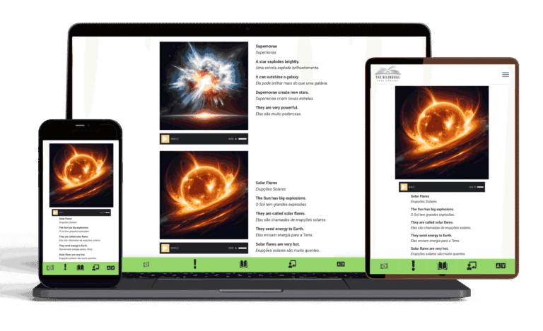 Progressive readers. Read more about the books you like. The bilingual audiobooks in this section have the same titles as the earlier section, Bilingual Audiobooks 7+. The difference is that these book pages include more information. We call this layered learning. Kids can continue reading more about the books they like with line-by-line translations. Interest-based learning is a core idea behind our materials. It helps kids stay engaged and learn two languages for longer. Print PDF bookshelves for your child to access the books easily by QR codes. Save the PDF to your phone for easy access to books via blue button links!