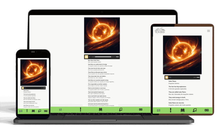 Os Leitores Progressivos permitem que as crianças continuem lendo mais sobre os livros que já gostam. Os audiolivros bilíngues desta seção têm os mesmos títulos da seção Audiolivros bilíngues 7+, mas aqui as páginas trazem mais informações — é o que chamamos de aprendizagem em camadas. Assim, a criança aprofunda o conteúdo que já desperta seu interesse, sempre com traduções linha por linha para apoiar a compreensão. A aprendizagem baseada em interesse é um ponto central do nosso material, pois ajuda os alunos a se manterem motivados e a aprenderem duas línguas por mais tempo. Imprima a estante em PDF para facilitar o acesso aos livros pelos códigos QR e salve o PDF no celular para abrir os audiolivros rapidamente pelos links do botão azul.